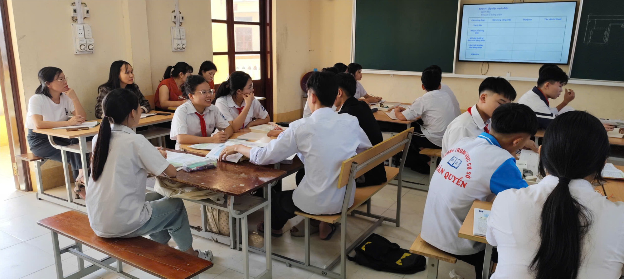 Hôm nay, ngày 14/11/2025, Trường THCS Nhân Quyền tổ chức sinh hoạt chuyên môn theo hình thức dự giờ rút kinh nghiệm. Người dạy thực nghiệm hôm nay là thầy Khoa, giáo viên môn Công nghệ. Thầy khoa đã dạy bài Thực hành lắp ráp bảng điện - môn Công nghệ 9. Tới dự buổi sinh hoạt chuyên môn có tất cả các thầy cô giáo của trường. Sau tiết dạy, tập thể giáo viên đã thảo luận, rút kinh nghiệm về cách dạy tiết thực hành.